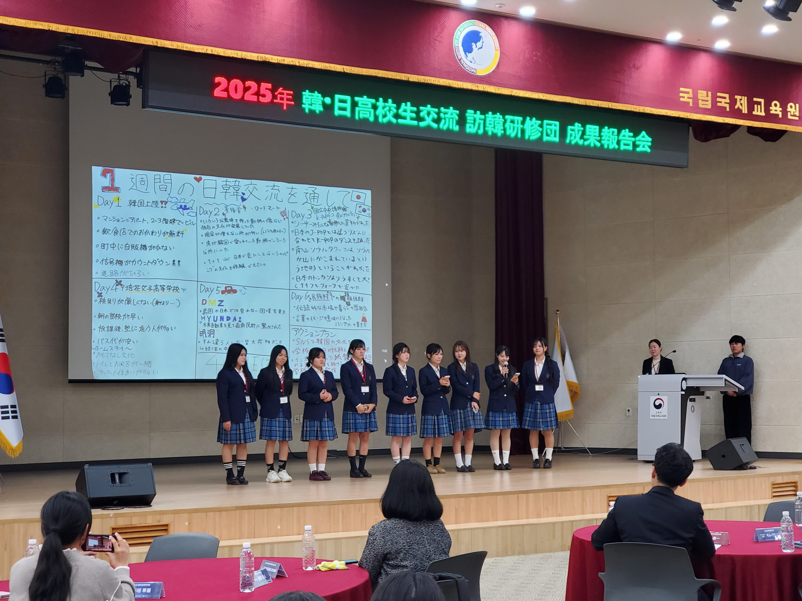 このような充実した内容の1週間の高校生訪韓団はあっという間に終わり、成果報告会ではお互いの学びや帰国後に訪韓団で学んだことをどう活かすかについてのアクション・プランを発表して帰国の途につきました。中には帰国後、早速アクション・プランを実践して、地元紙に記事が掲載されたという嬉しい便りも届いています。