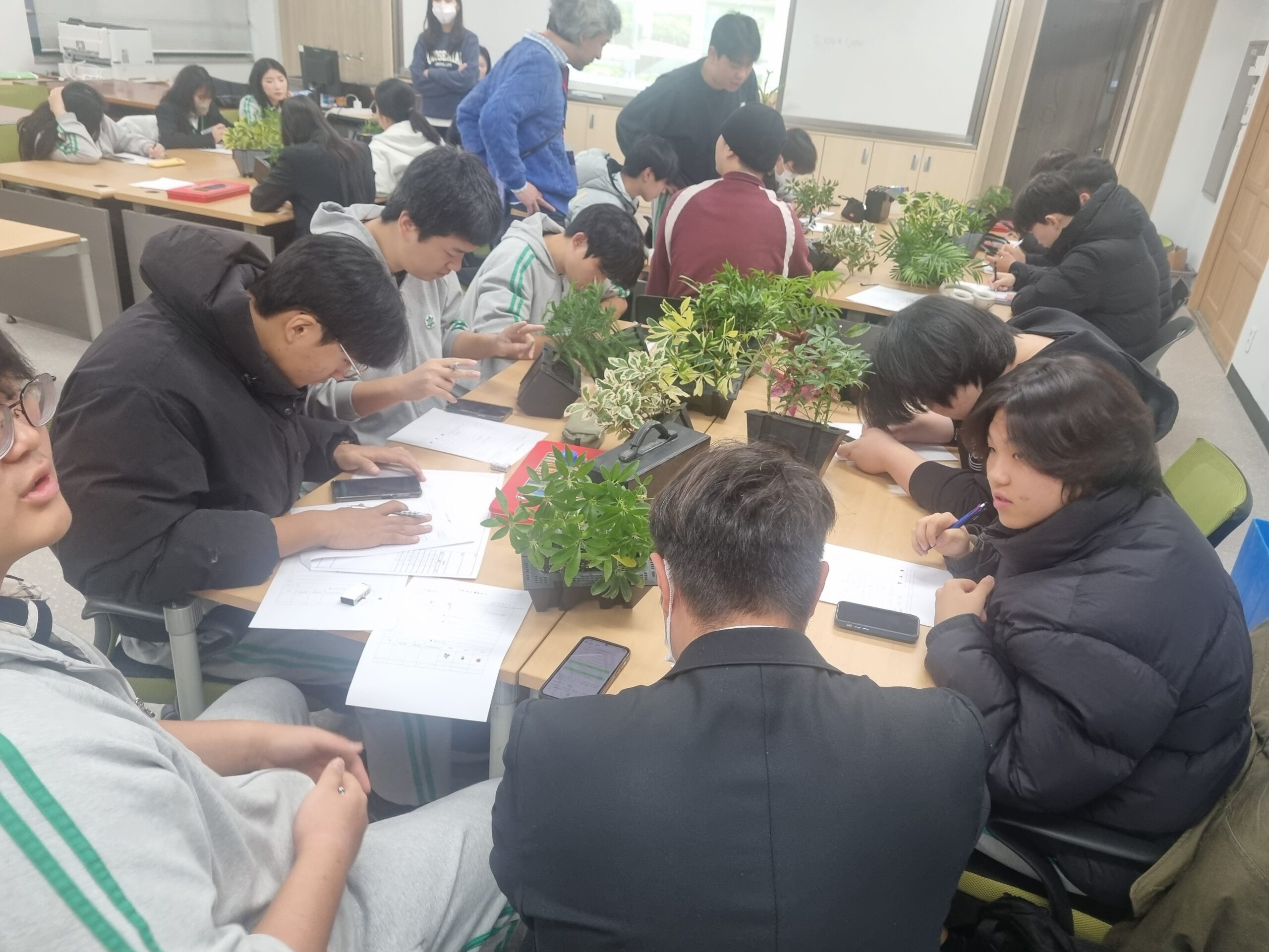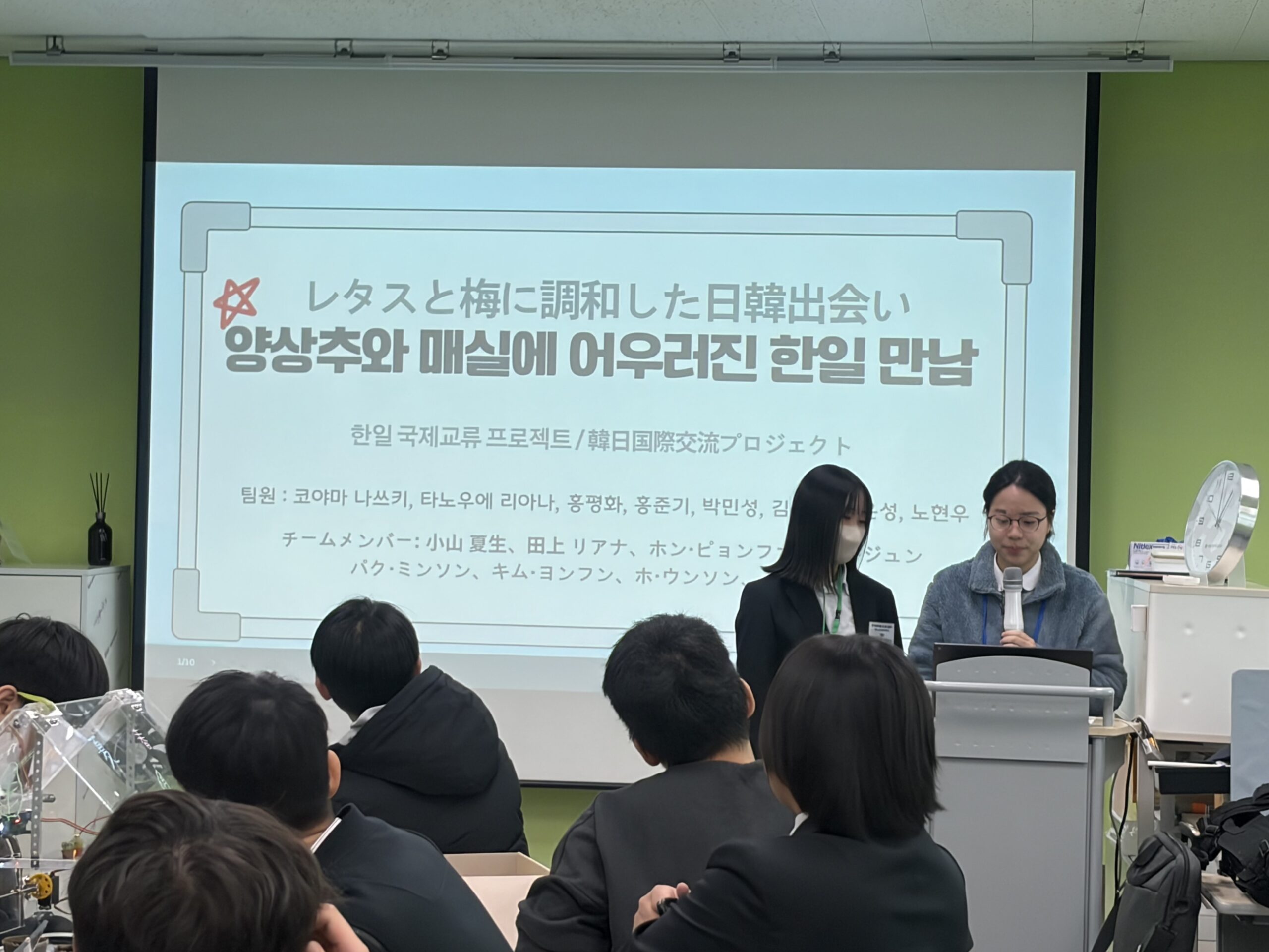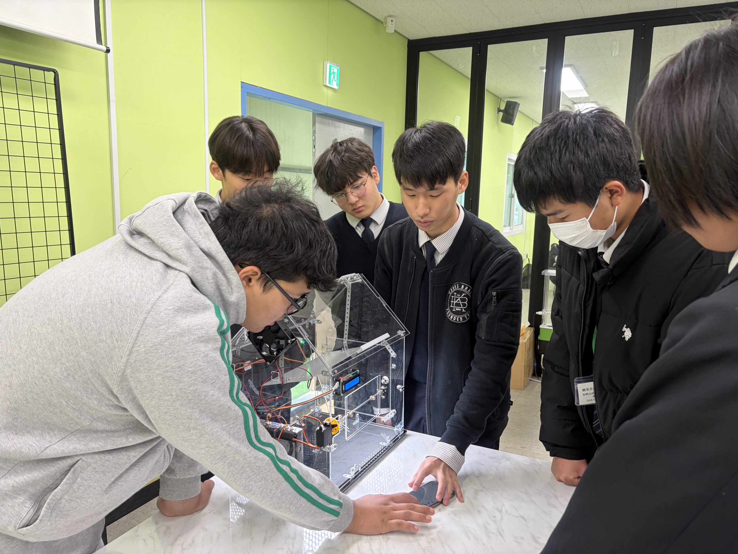 訪韓した翌日から2日間にわたり水原農生命科学高等学校を訪問し、韓国の生徒と多種多様なプロジェクトを行いながら現代の韓国農業について学びました。特にスマートファームを選択した生徒たちは、初日にアジア最大規模のスマートファームを運営する韓国企業を訪問し、同事業についての講義を受けたほか、出荷されるまでの工程を見学しました。2日目にはプラスチックの模型と基盤を組み立て、育てたい植物の生育環境を調査し、パソコン操作で温度や湿度を管理することのできるプログラム作りを行いました。