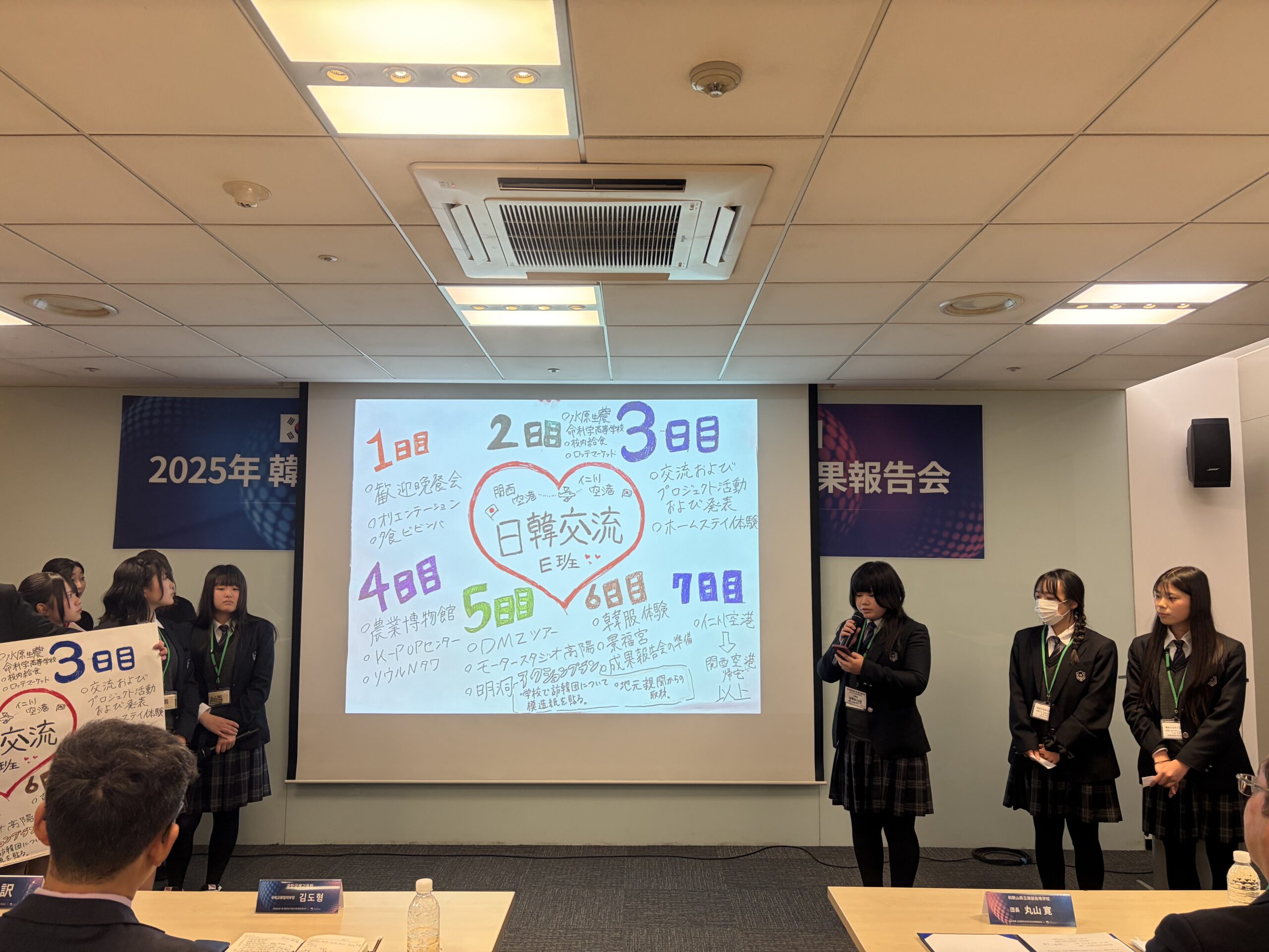 帰国前日、訪韓の成果をまとめた成果報告会の発表では「国交正常化60周年という記念すべき年に参加できてよかった。日本と韓国の関係がより発展してくれたら嬉しい」「韓国人の人柄の良さに胸を打たれた。もっと韓国を知りたくなった」「SNSでは悪意のあるものや誇張された情報を多くみるが、対面で交流できたことによって、自分の目で見極めることがいかに大切なのかということが分かった」といった感想が聞かれました。ぜひ、訪韓団で得た経験を活かして今後も活躍していってもらいたいと思います。