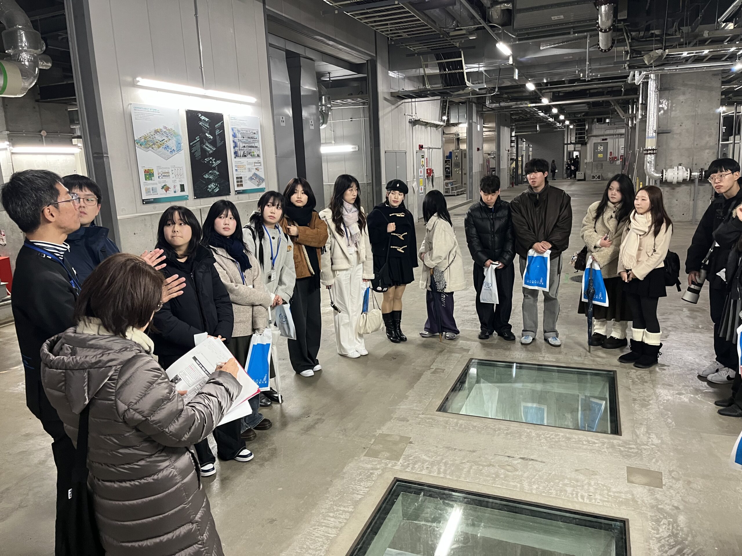 大阪では「おおさかATCグリーンエコプラザ」を視察、「あべのハルカスバックヤードツアー」体験を行いました。グリーンエコプラザでは日本の企業によるさまざまなSDGs活動について学び、あべのハルカスバックヤードツアーでは生ごみからメタンガスを取り出して燃料として利用する設備や、豪雨に備えた雨水貯蔵スペース、建物の耐震・制振技術等を、説明を聞きながら視察しました。