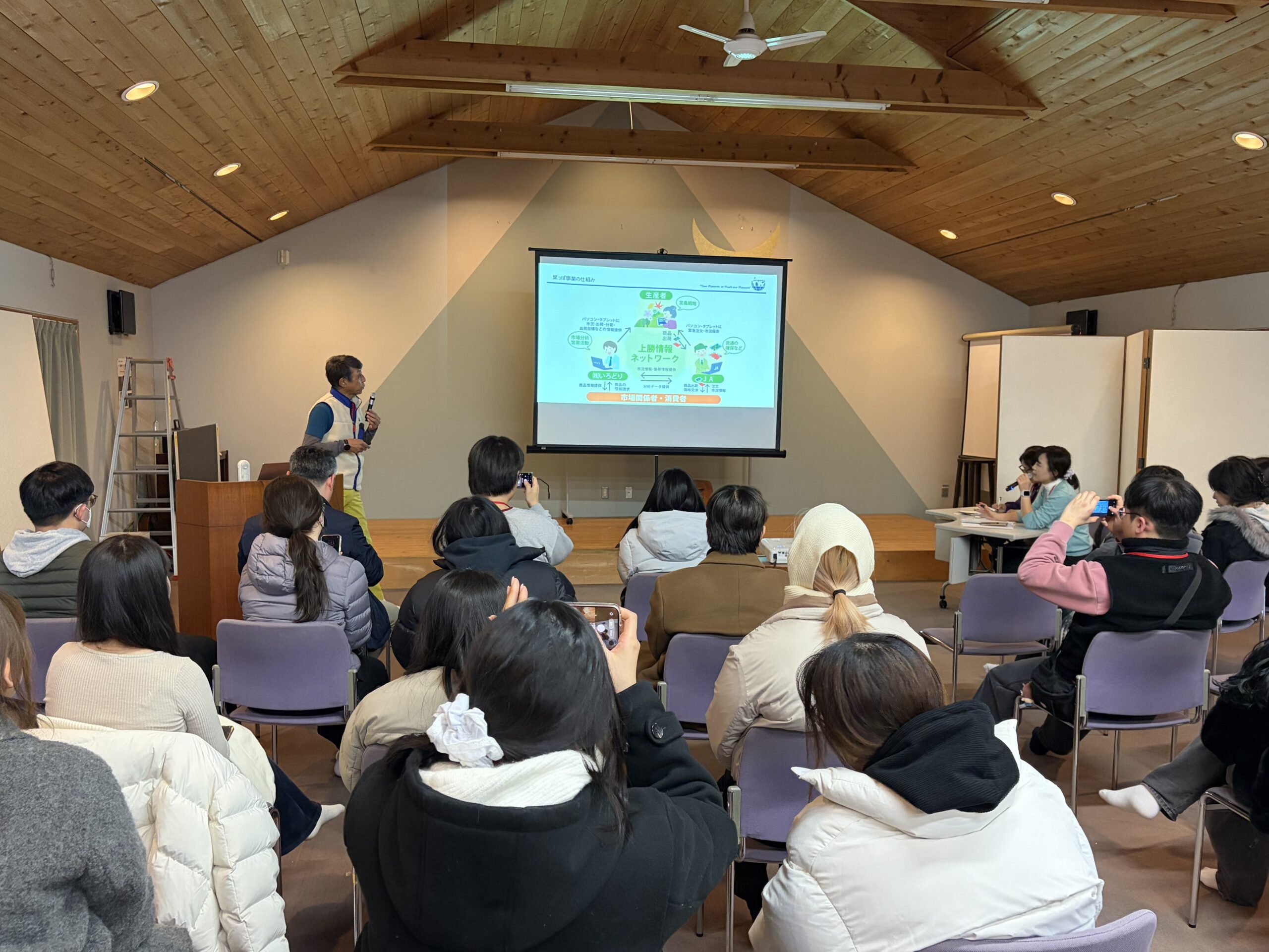 また、上勝町への訪問の際には、間伐材を暖房や温泉の燃料として利用している木質バイオマス事業や住民がごみを43種類に分別し、ごみを生み出さないようにすることによってリサイクル率80%を達成した「上勝ゼロ・ウェイストセンターWHY」の取り組み、料理の装飾に使うツマモノの葉っぱや花を栽培・出荷・販売することで高齢者の雇用を生み出した「葉っぱビジネス」等の事例を紹介してもらいました。